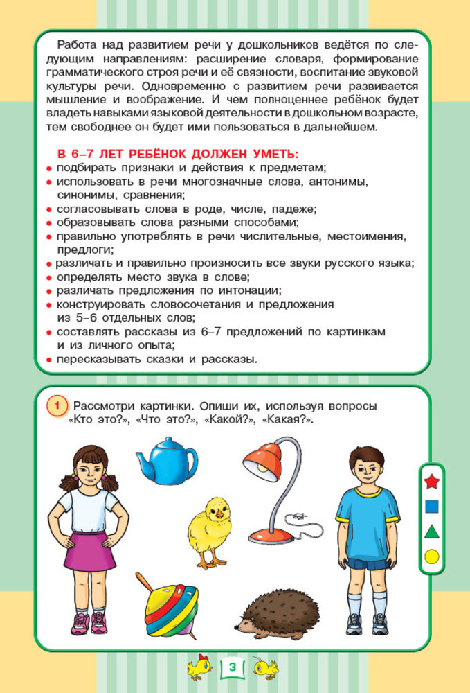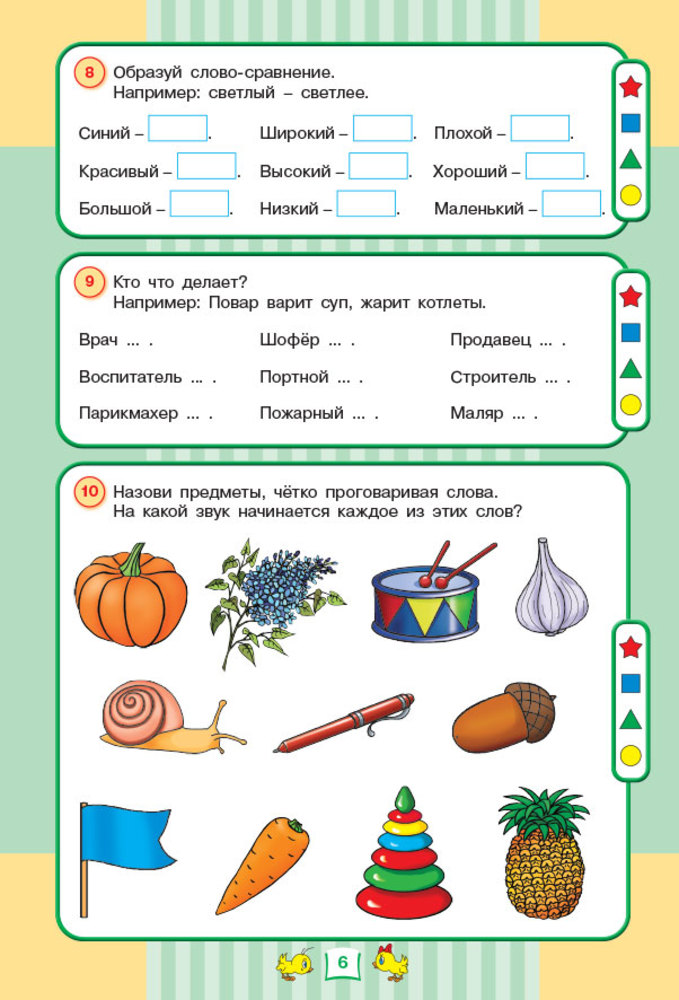 Тесты. Развитие речи. 6-7 летВ данный момент этот товар отсутствует в продаже. Возможно, у нас найдется аналогичный или похожий товар здесь. Серия: Тесты "Знания цыпленка" Предлагаем Вам пособие для определения уровня развития речи ребёнка 6–7 лет. Задания в пособии помогут проверить, что знает и умеет Ваш ребёнок. Вы узнаете, с чем он ещё не справляется, чтобы в дальнейшем поработать над «пробелами» в его знаниях. |