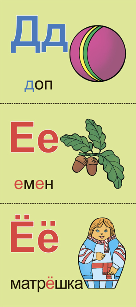 Карточки красивые, яркие. Ребенок с удовольствием их разглядывет, изучает. Складываются в конвертик из плотного картона. Сами карточки тоже достаточно плотные. На одной карточке по три буквы, разделены между собой пунктирной линией. При желании можно их разрезать. Тогда получаются компактные карточки, которые удобно держать в руке. Для ребенка в самый раз.