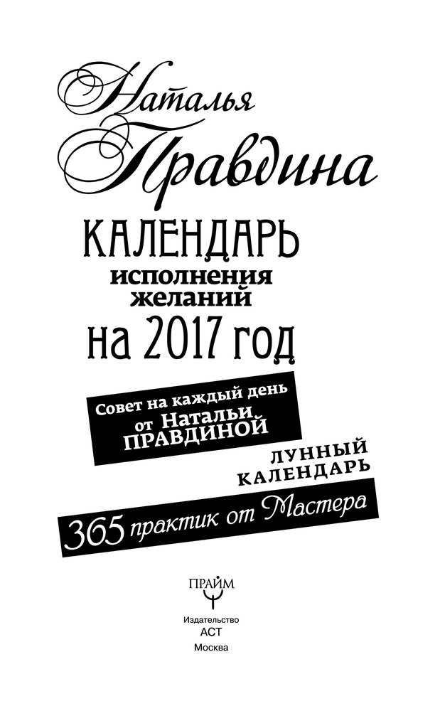 В лунном календаре Натальи Правдиной вы найдете 365 способов привлечения в свою жизнь самых разных энергий — Благополучия, Успеха, Изобилия, Любви, которые помогут вам осуществить любое желание, пробудить силы для создания нужных обстоятельств.