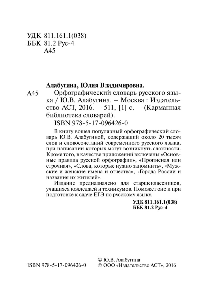💳 Оплатить за товар можно при получении 🇰🇿 Есть бесплатная доставка по Казахстану 🎁 Копите бонусы с каждой покупки Серия: Карманная библиотека словарей Словарь содержит около 20 000 слов и словосочетаний. В него вошли слова современного русского языка, при написании которых могут возникнуть сложности. В тех случаях, когда надо пояснить особенности правописания, даются краткие толкования. Словарь может также служить справочником по русскому произношению, так как составлен с соблюдением всех орфоэпических норм. |
