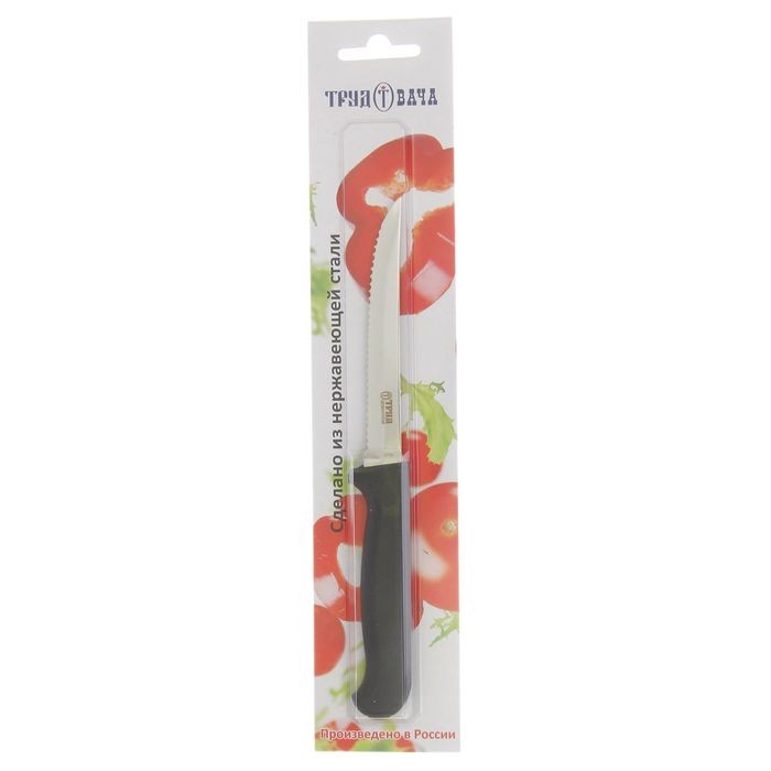 ПАО «Труд» Нож для овощей «Элегант»В данный момент этот товар отсутствует в продаже. Возможно, у нас найдется аналогичный или похожий товар здесь. Нож «Элегант» для овощей, длина 21 см, режущая часть 11,5 см, специальная заточка будет великолепным приобретением любой хозяйки. Металлический нож является универсальным кухонным атрибутом и может использоваться для нарезки овощей и фруктов, для разделки мяса и рыбы. Таким ножом можно пользоваться не только на разделочных досках, но и на любых других поверхностях: на керамике, бумаге, металле. |