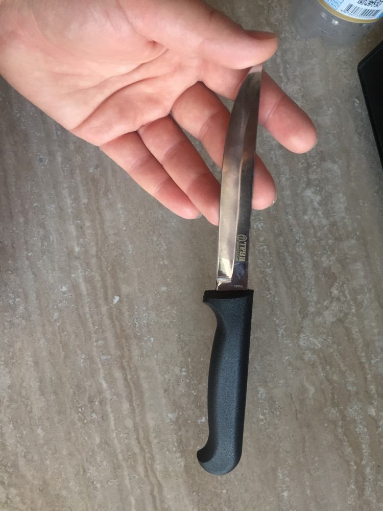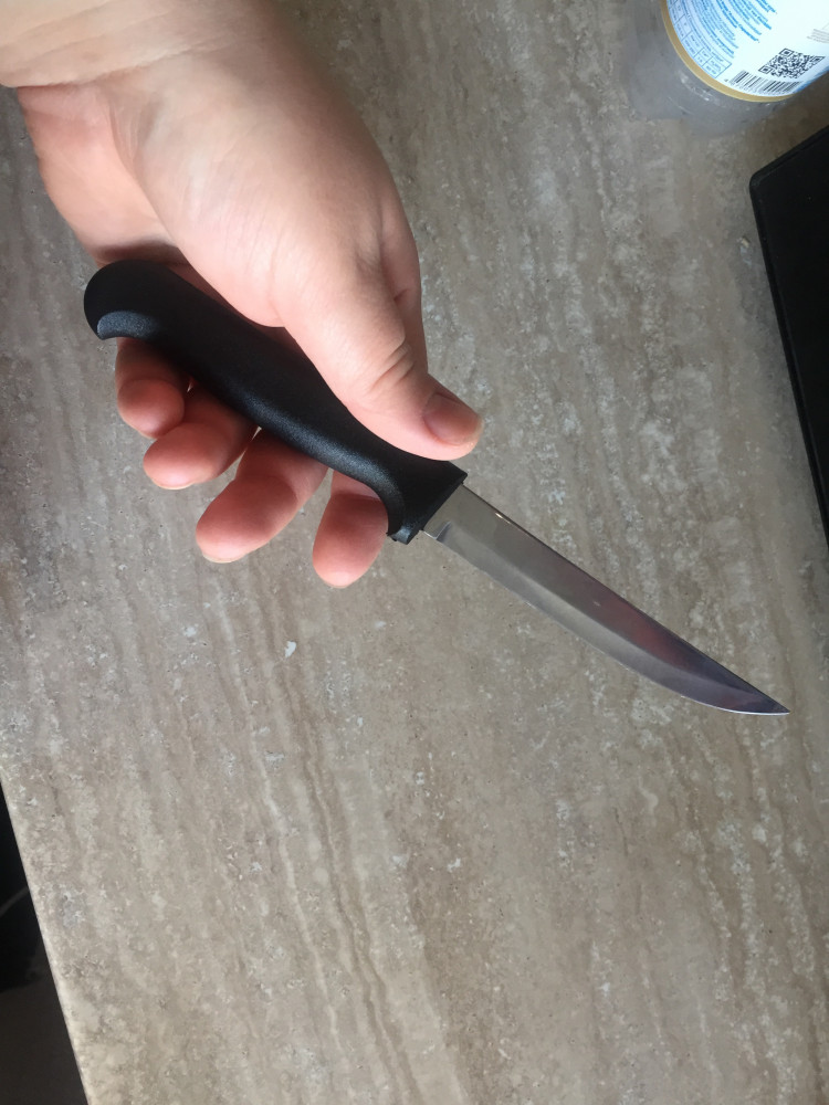 Будьте осторожны, нож очень сильно скользит в руке, а в мокрых руках вообще как масло.
