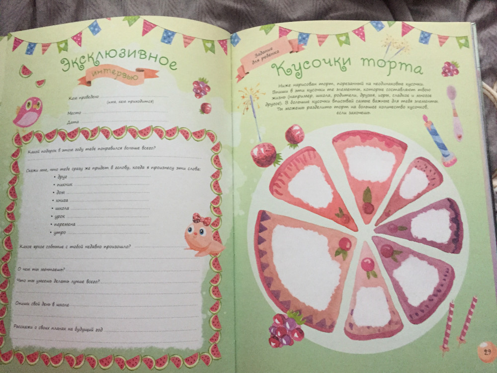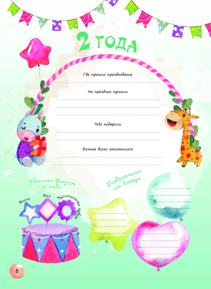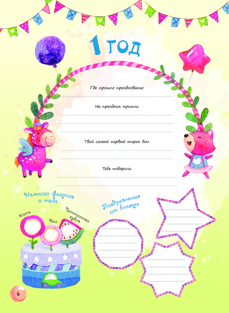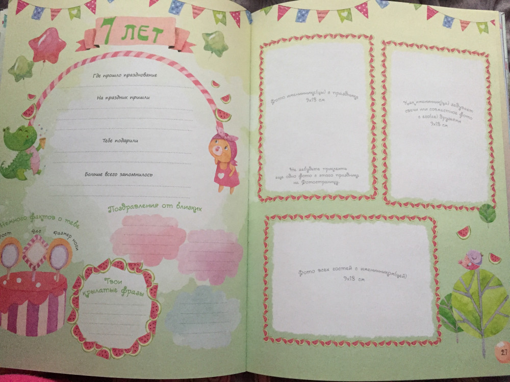 Отличный альбом. Больше для запоминания самых ярких моментов со дня рождений. Интересно отвечать на вопросы. В конце есть конвертик для памятных вещей с дня рождения, который можно склеить и открыть когда ребенок уже станет взрослым.