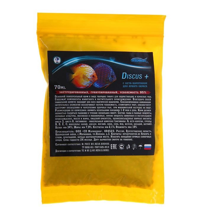 Отзывы «Гранулированный корм для рыб «Discus+ Z2» для окраса, 70 мл»