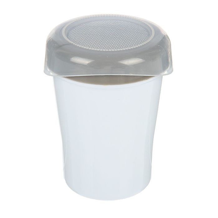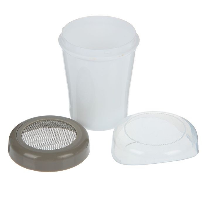 Прибор оснащен мелкой сеткой для просеивания и пластиковой крышкой. |