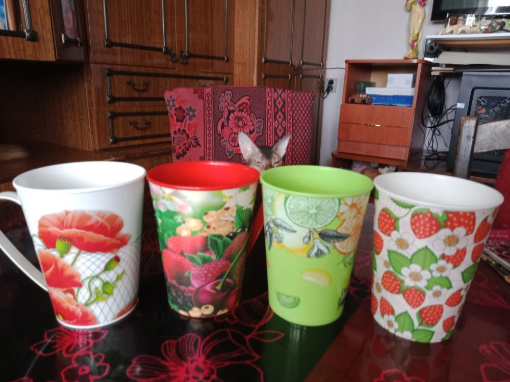 Хорошие кружки, легкие, взяли для поездки, в дорогу. Яркие, пластик не пахнет.