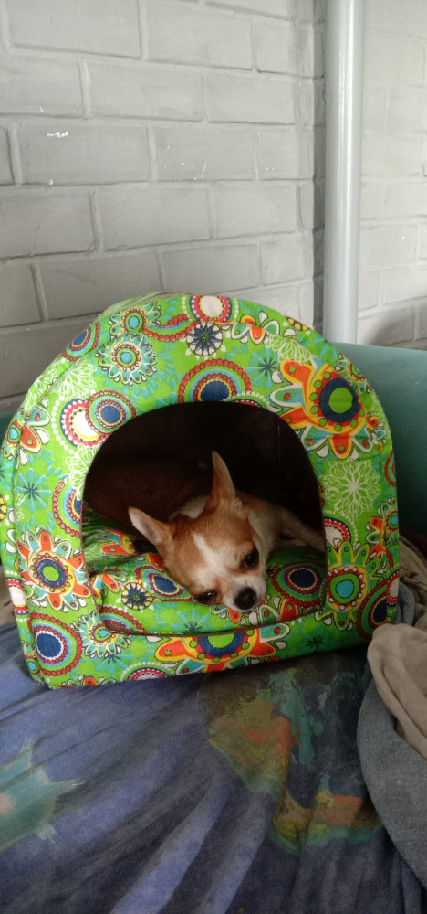 Домик маленький оказался для нашей собачки. Но она его по другому применила. Поэтому оставили.