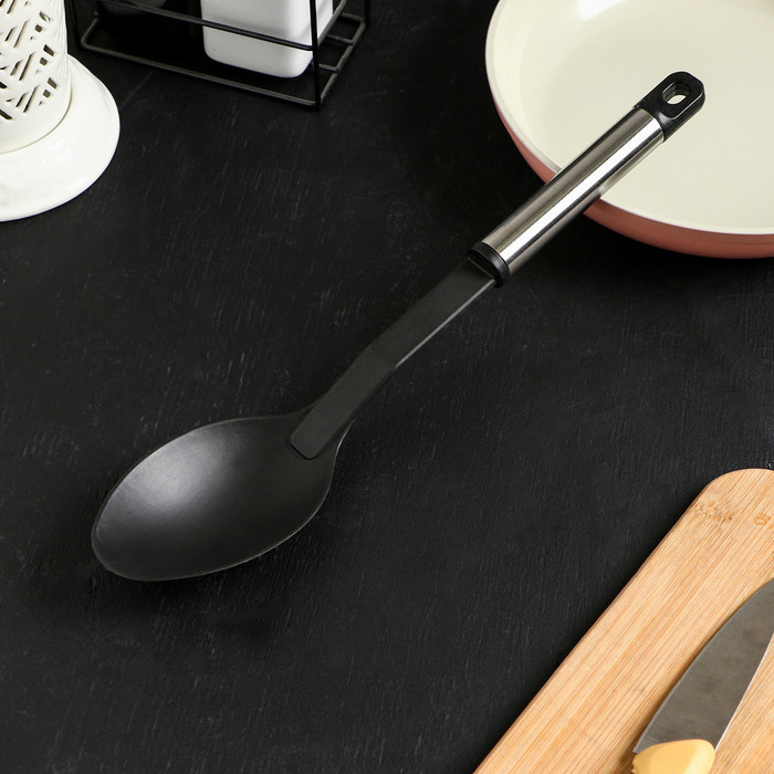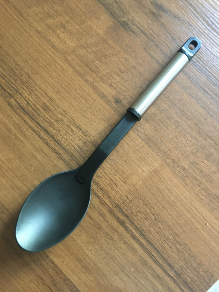Ложка удобная, недорогая, эргономичная, не стоит оставлять на плите - быстро плавится. В целом, для своей цены неплохая.