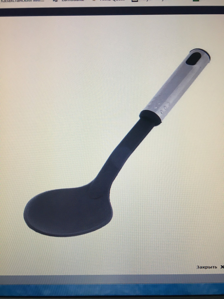 Ложка в целом неплохая. Лёгкая, пластиковая. Можно использовать для посуды с антипригарным покрытием. Я её, собственно, и покупала для этой цели. Недорогая. Однако ложка, которую мне прислали, отличается от изображения на сайте (видно на фотографиях). Учитывая то, что у меня есть приборы, аналогичные изображённым на сайте, эти отличия в худшую сторону. Кроме того, на ручке моей ложки металлический цилиндр не закреплён и свободно вращается. Вроде ничего критичного, но напрягает