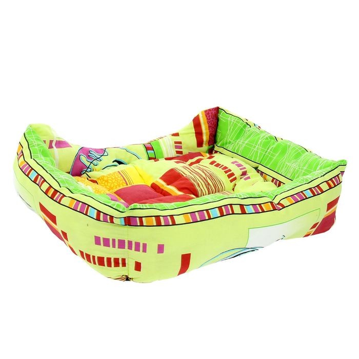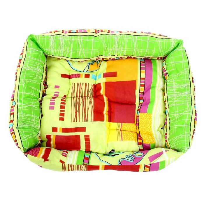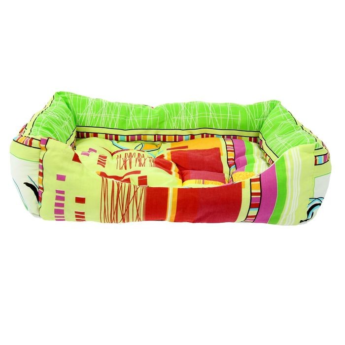 Материал хлопок гипоалергенный. У меня китайская хохлатая собака. Ему как раз в пору лежанка пришлась. Матрасик съемный, что очень удобно. Наш кобель спит теперь на розовом лежаке))))