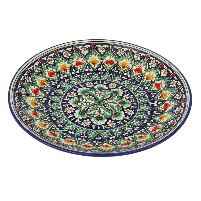 Блюдо круглое (диаметр 41 см)В данный момент этот товар отсутствует в продаже. Возможно, у нас найдется аналогичный или похожий товар здесь. Блюдо из глазурованной керамики ручной работы — это не просто обеденный атрибут, это украшение стола. Посуда с национальной росписью станет отменным подарком для ценителей высокородной посуды. |