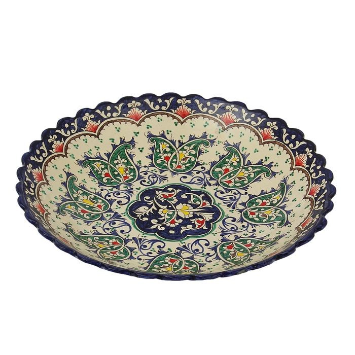 Блюдо глубокое (диаметр 33 см)В данный момент этот товар отсутствует в продаже. Возможно, у нас найдется аналогичный или похожий товар здесь. Блюдо из глазурованной керамики ручной работы — это не просто обеденный атрибут, это украшение стола. Посуда с национальной росписью станет отменным подарком для ценителей высокородной посуды. |