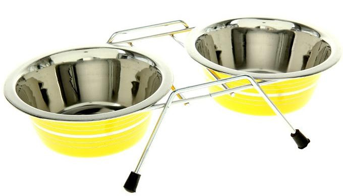 Отзывы «Миска двойная цветная с полосой на подставке, 2х200 мл»