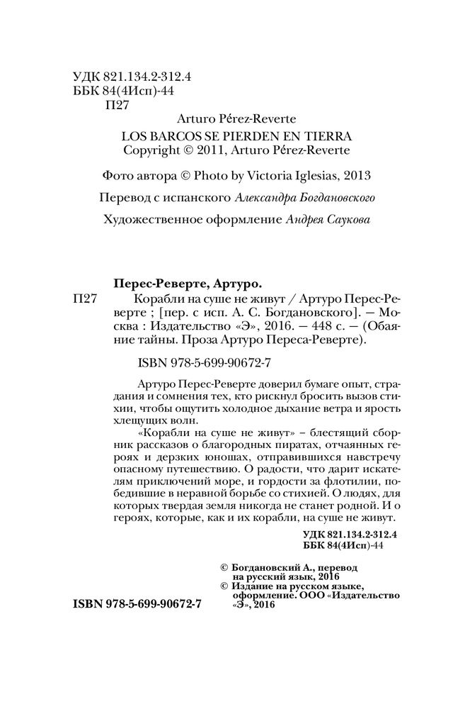 Корабли на суше не живутВ данный момент этот товар отсутствует в продаже. Возможно, у нас найдется аналогичный или похожий товар здесь. Серия: Обаяние тайны. Проза А.Переса-Реверте (обложка) Артуро Перес-Реверте доверил бумаге опыт, страдания и сомнения тех, кто рискнул бросить вызов стихии, чтобы ощутить холодное дыхание ветра и ярость хлещущих волн. |