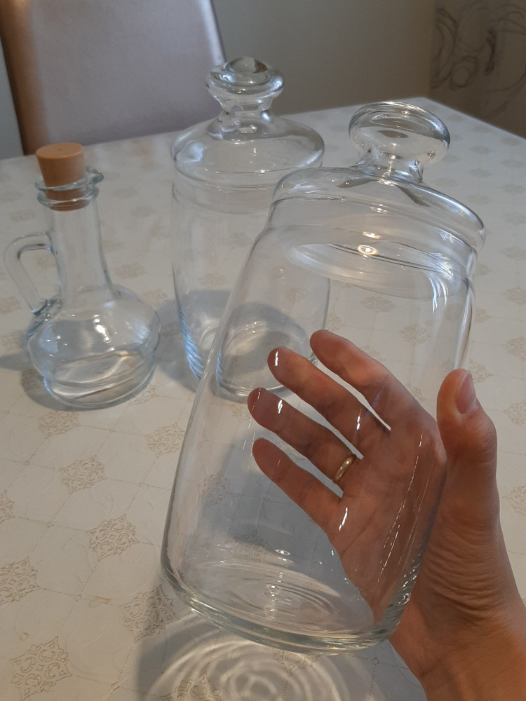 Чудесные баночки, смотрятся очень хорошо. Горлышко широкое, пользоваться удобно. Иногда слетает резинка с крышки, но легко надевается обратно. Пришли без повреждений.