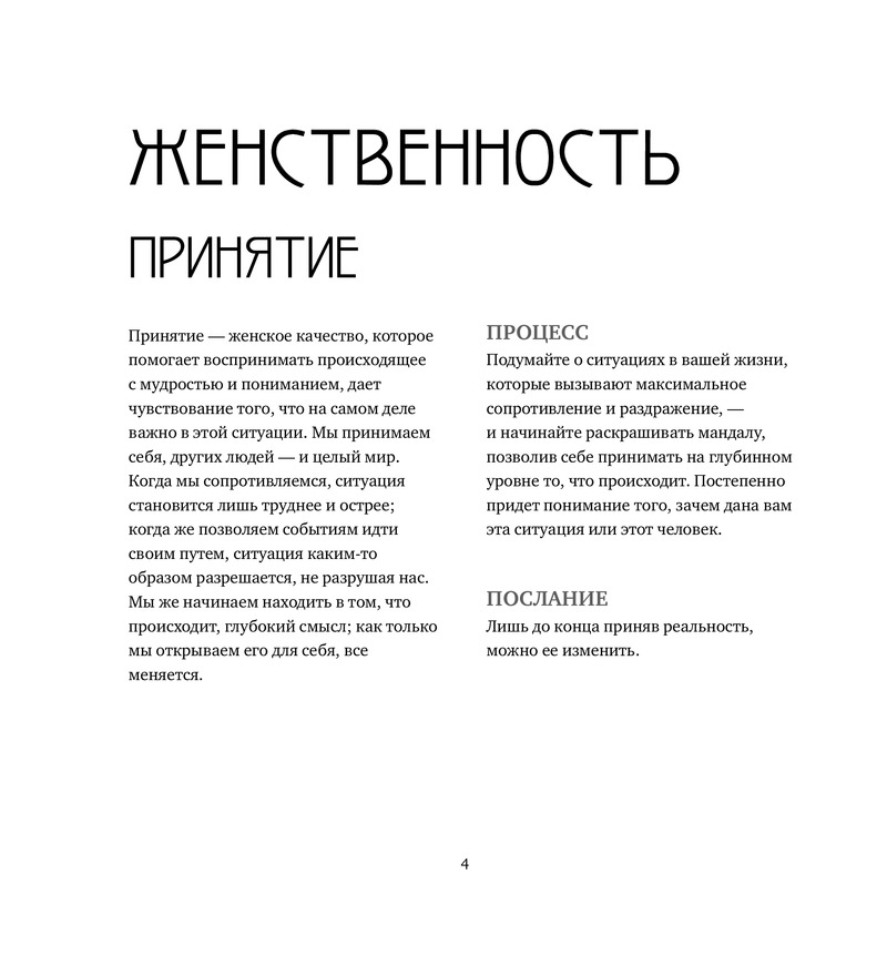 Очень нравится, что рядом с каждой мандалой есть описание как с ней работать, заставляет задуматься и хорошее качество рисунка, тонкие линии.