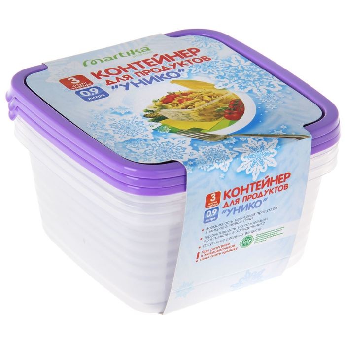 Martika Набор контейнеров «Унико» 3 шт., 900 мл, цвет в ассортименте+73 плотные крышки удобные тонкий пластик сколы