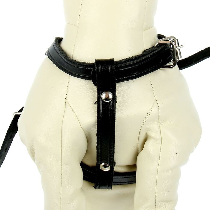 Шлейка подходит только для маленьких собак, качество оставляет желать лучшего. Насчет кожи сомневаюсь, скорее кожзаменитель.