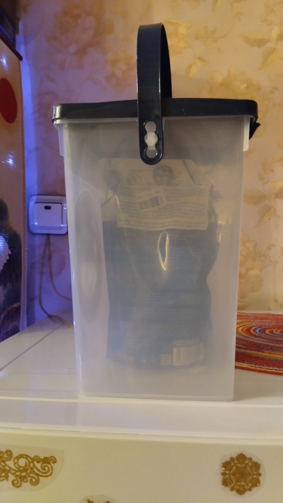 Очень милый контейнер! Честное слово - украшение. Но оказывается объем 5 литров именно для моей семьи большой, мы покупаем концентраты порошков. Но для родителей которые покупают порошок по 3-5 кг - идеально. Рекомендую