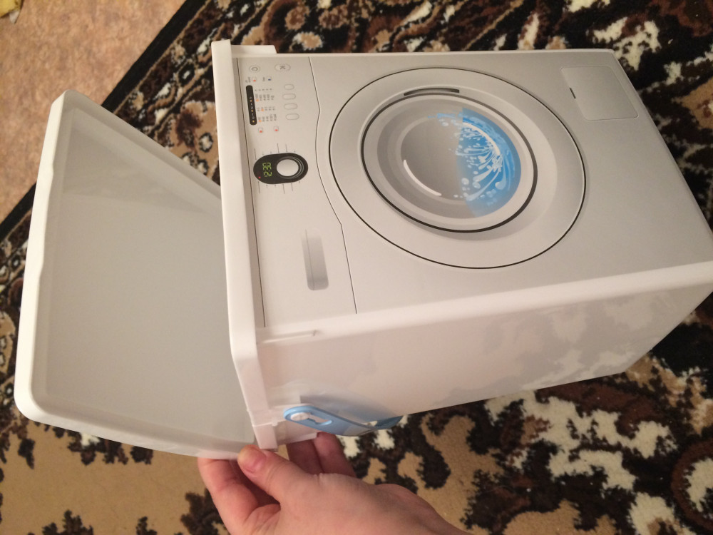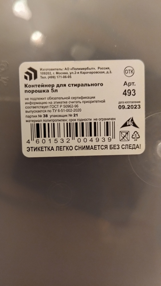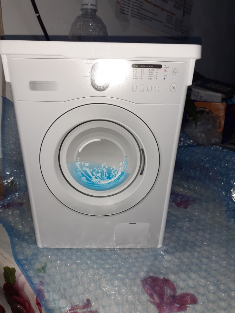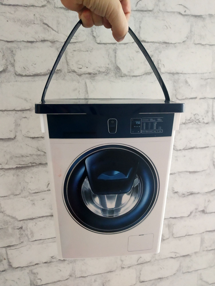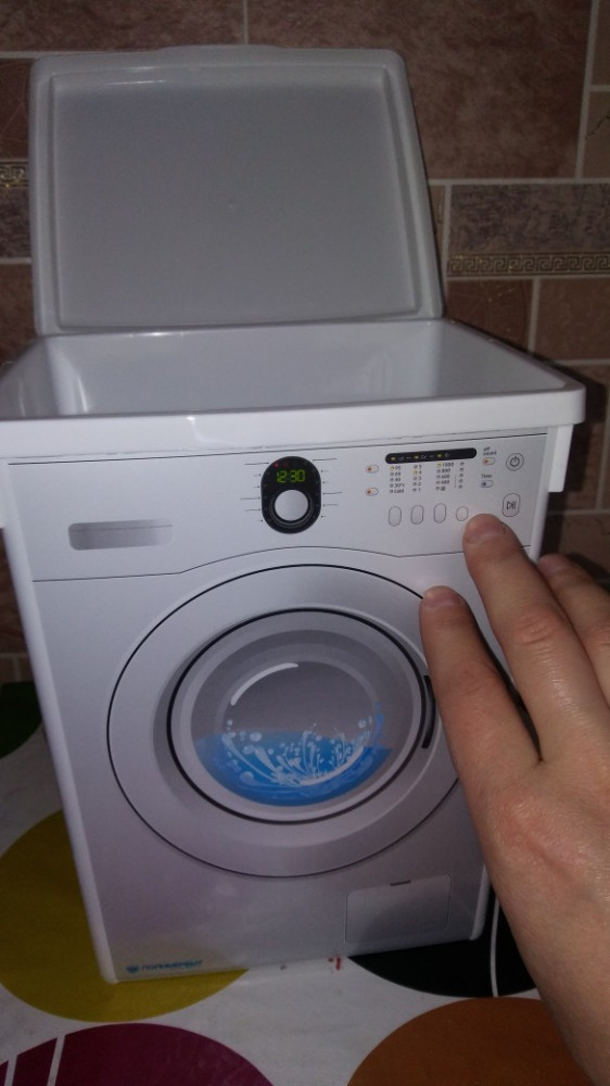 Как же я расстроена! Он - прозрачный! Да, я знала, что цвет контейнера без права выбора. Но на фото в отзывах в основном из белого непрозрачного пластика, я очень хотела именно такой. Небольшой, миленький. На лицевой стороне на "панели управления" большущая царапина. Крышка отвалилась при первом же открывании, почему то выпадает постоянно. Ручка из мягкого пластика, гнется, держится крепко, не выпадает и не отрывается (без порошка). Стиральная машина - это рисунок, не наклейка. Рисунок качественный, не стирается. Крышка не герметичная, не закрывает наглухо, просто ложится сверху на контейнер, следовательно ваш порошок будет пахнуть на всю комнату, где стоит. Пластик достаточно мягкий, примерно как пузырек шампуня, даже немного мягче. Отказаться не было возможности, брала на подарок и на перезаказ времени не было. Флип спасибо за быструю доставку, даже немного раньше.