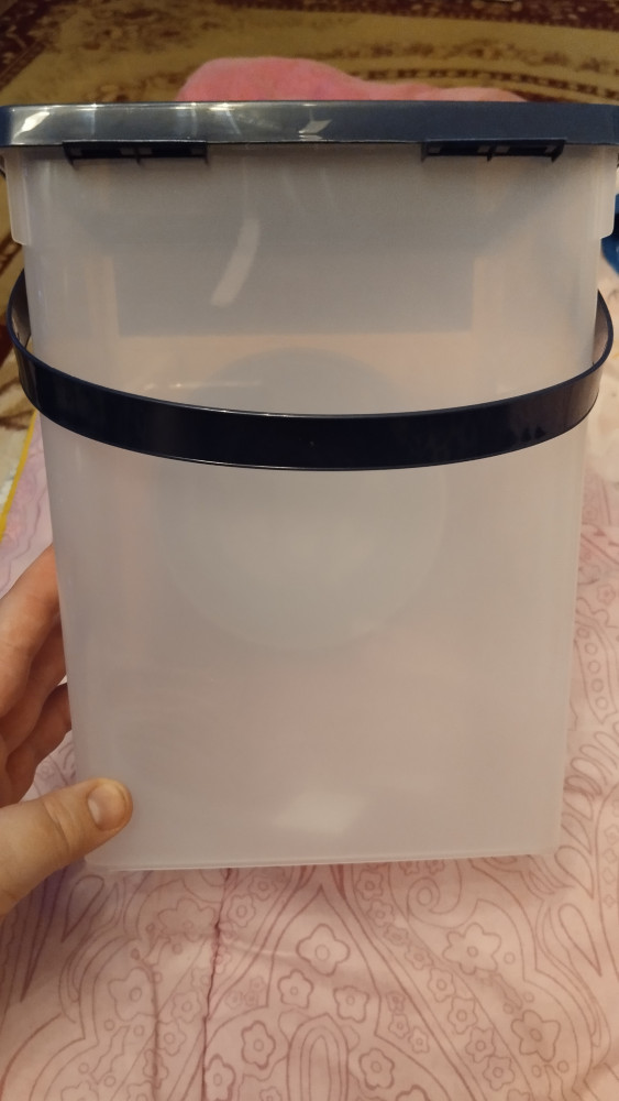 Контейнер лично мне очень понравился. Да у него немного хлипкое крепление крышки, которое со временем может сломаться. Но это не критично, контейнер закроется и без креплений. Помещается 3кг порошка.