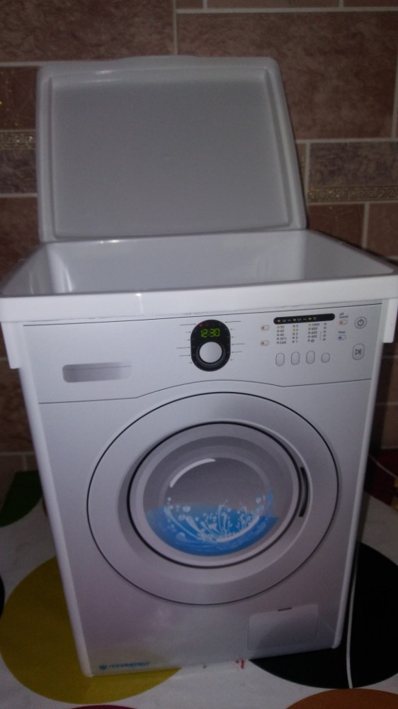 С виду кажется маленький, но это только кажется, засыпала практически 5 кг. порошка. Пластмасса мягковата, но уж очень он стильненько смотрится.
