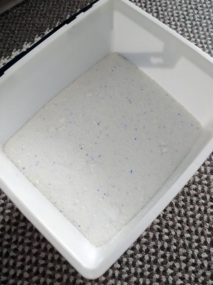 Контейнер удобный в использовании. На фото видно, сколько остается свободного места, когда насыпано 3 кг порошка.