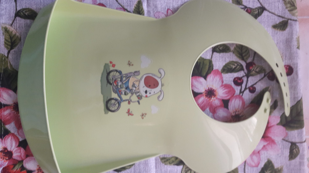 Нагрудник очень удобный, пластик мягкий, легко моется. Ребенку комфортно в нём.