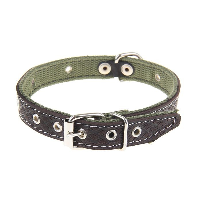 Ошейник комбинированный кожа/брезент, 46х2 см, безразмерный, цвет в ассортименте-25% +61