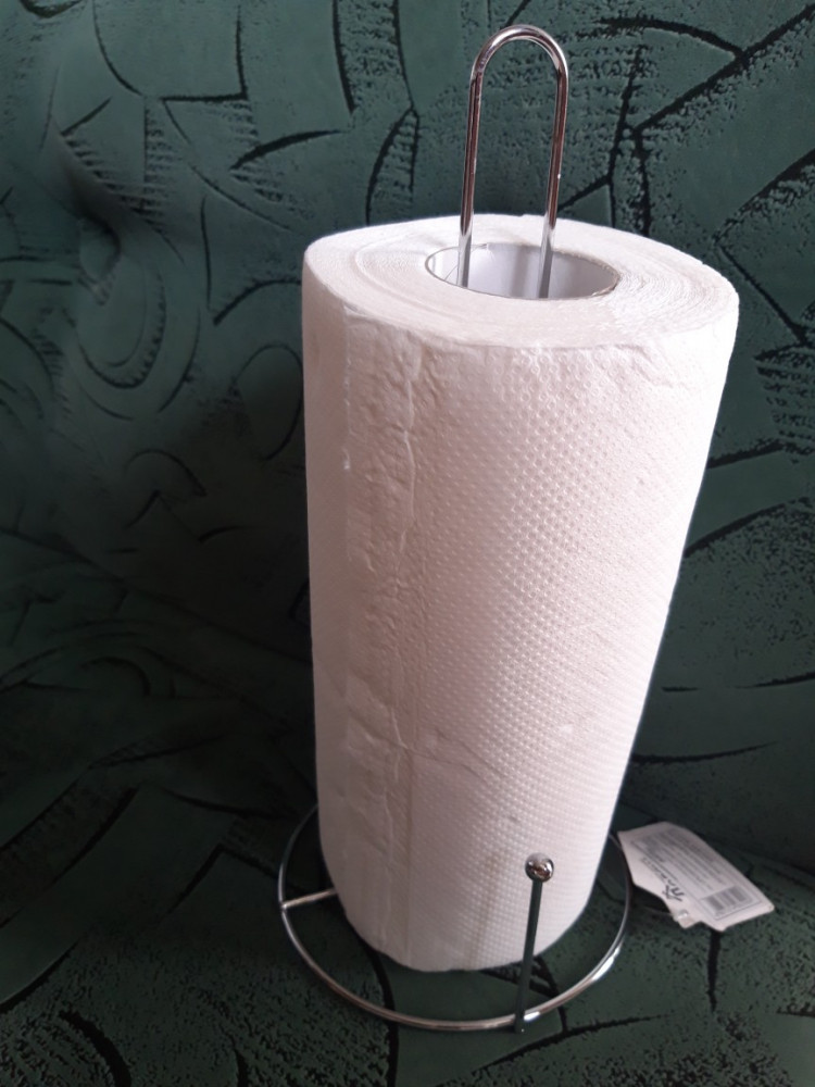 подставка под бумажное полотенце не для всех видов рулонов, у нас большой намотки оказалось, ограничение не дает свободно двигаться рулону. А когда вставляешь стандартный рулон, то он наклоняется в сторону, то есть плотно не держится рулон бумажных салфеток, скользит по поверхности, поэтому, второй рукой придерживаешь, и отрываешь другой рукой. А также сама подставка пришла из металла с царапинами, как будто немного сколота и ржавчина