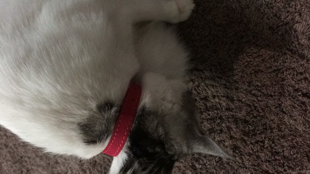 Нам пришёл красный) хотя к заказу писала что бы розовый положили 💁🏽. Ну ничего , у нас кошка белая, красный цвет очень даже ничего:) Не снимает и не мешает.