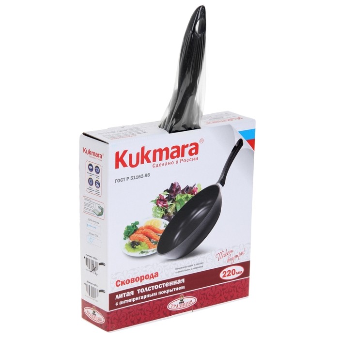 Kukmara Сковорода с антипригарным покрытием-40% +73 легкая непригорает высокие стенки долговечность