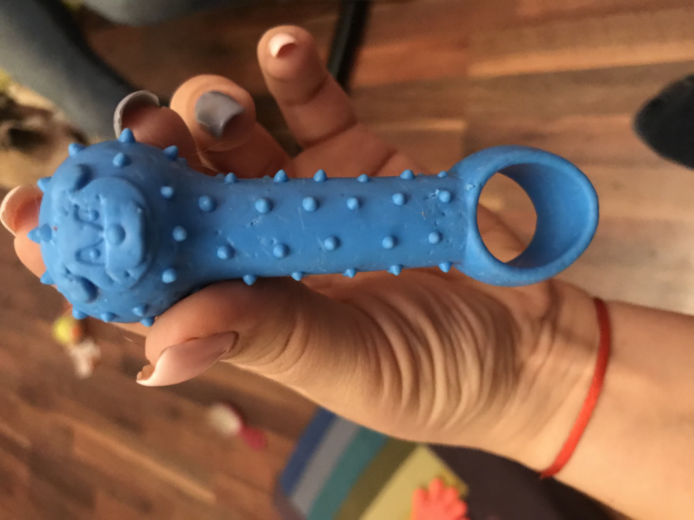 Заказываю уже второй раз. Любимая игрушка. Единственное, ручку мы откусываем в первый день.