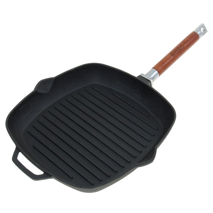 В данный момент этот товар отсутствует в продаже. Возможно, у нас найдется аналогичный или похожий товар здесь. Сковорода-гриль чугунная со съемной ручкой изготавливается из натурального материала без лишних химических соединений. При нагревании не выделяет никаких токсичных веществ. Такая посуда одинаково пригодна для использования на любой плите и в духовке (при условии отсутствия деревянных ручек).