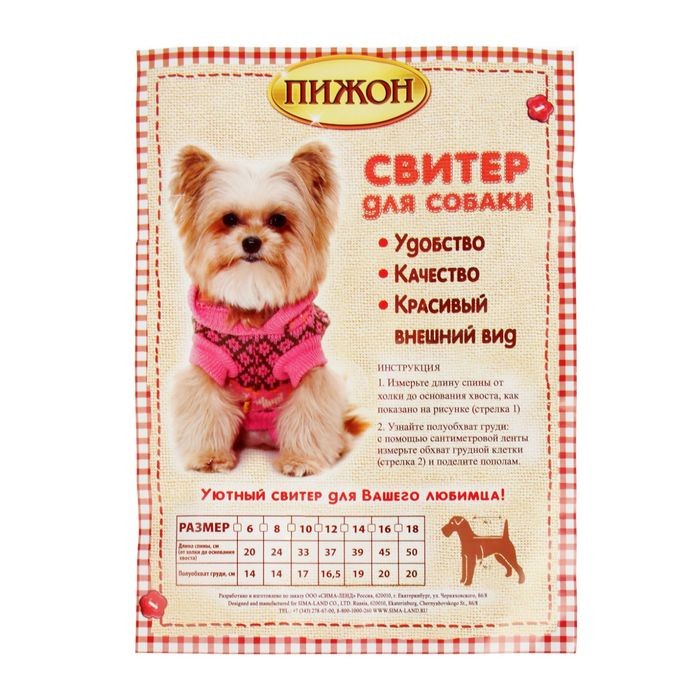 Увы, свитерок оказался мал. В лапках жмет. Думаю, на взрослую и справную таксу подойдет отлично. Свитер плотный, теплый. Спасибо за доставку.