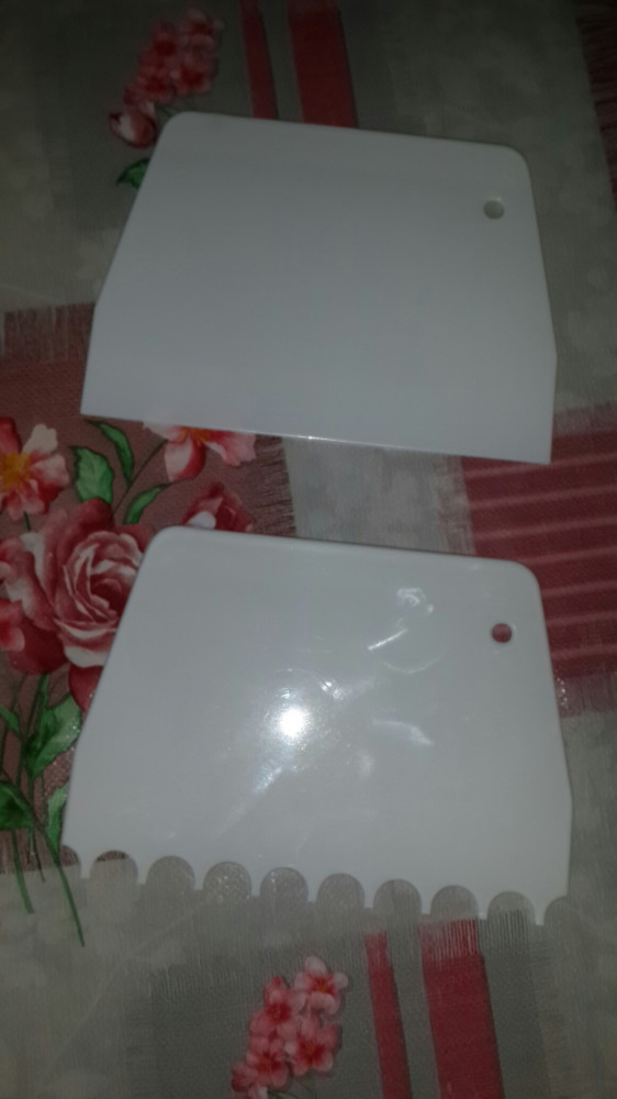Шпатель удобный-пластик качественный, плотный: незаменимая вещь на кухне для работы с тестом.Уже использовала в работе.Оправдал мои ожидания.Супер!