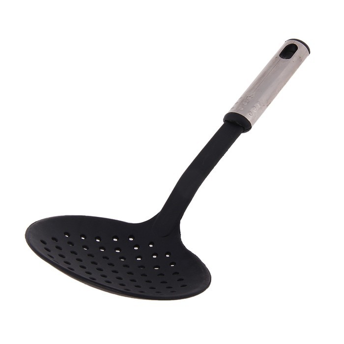 Хорошая шумовка. Нейлон без запаха и заусениц. Размер небольшой. Рукоятка из тонкого металла. Легкая. За такую цену, просто подарок.