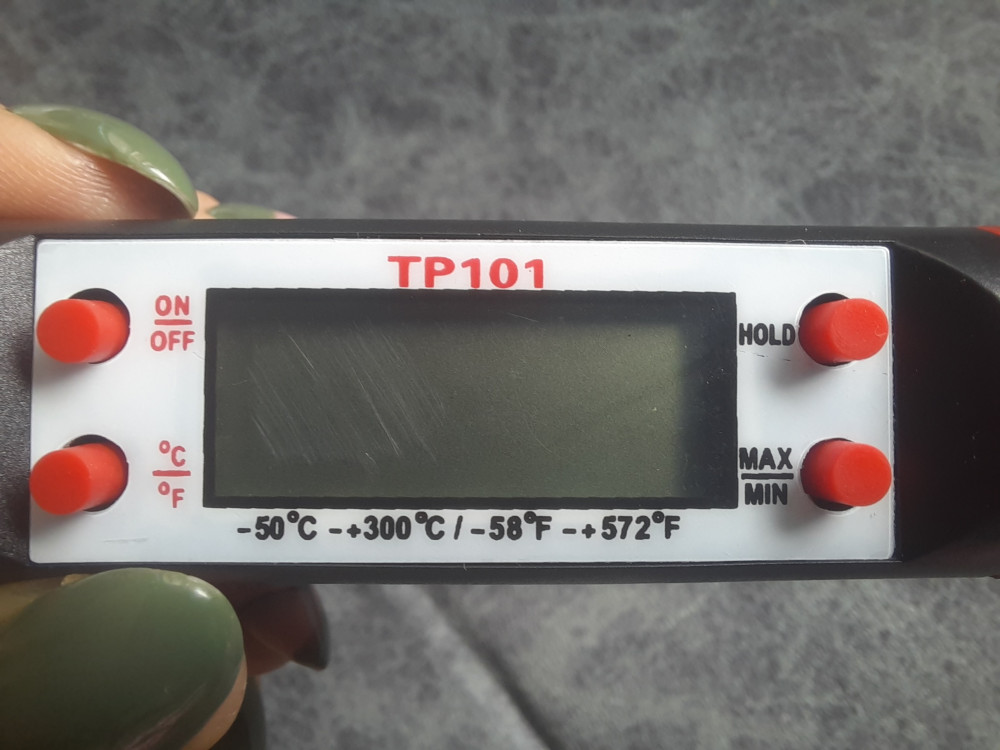 Пришел в хорошей, прозраччной упаковке, цилиндрической формы. Удобно в ней хранить, можно подвесить...но я до конца с ним еще не разобралась... температуру измеряет в цельсиях и Фарингейтах, если я правильно поняла... такой термометр давно хотела, видела как им пользуются блогеры-повара, вот наконец то и у меня есть!!!