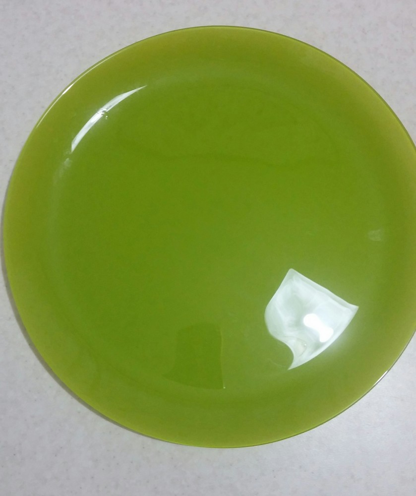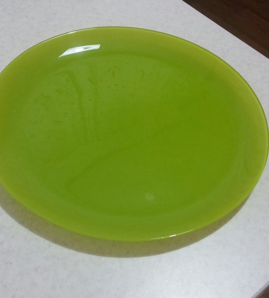 Тарелка салатного цвета. Ожидала, что цвет будет поярче, но и этот цвет неплохой. Купила четыре, разных цветов, подойдет для нарезки, слоенных салатов, торта и пр. Покупкой довольна.