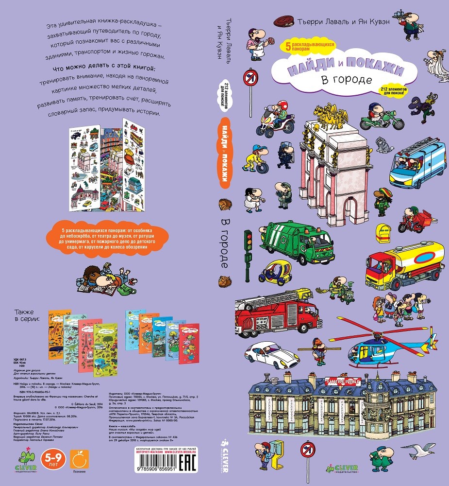 В городе. Найди и покажиВ данный момент этот товар отсутствует в продаже. Возможно, у нас найдется аналогичный или похожий товар здесь. Серия: Найди и покажи Эта удивительная книжка-раскладушка – захватывающий путеводитель по городу, который познакомит вас с различными зданиями, транспортом и жизнью горожан. |