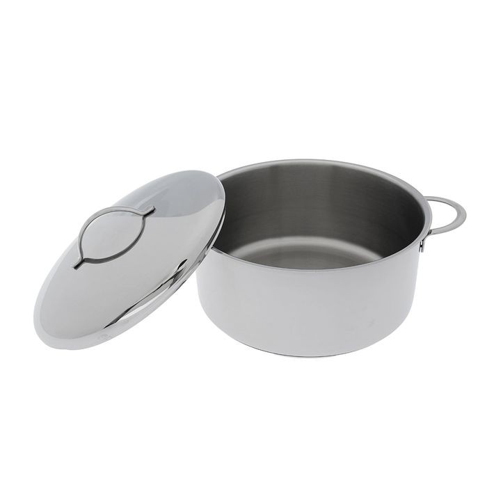 Нержавеющая сталь делает посуду особенно долговечной. Она не требует никаких специальных лопаток и венчиков. Подходит для всех типов плит: электрической, газовой, индукционной, галогеновой, стеклокерамической, для духового шкафа. Можно хранить в холодильнике и мыть в посудомоечной машине. Со стенок кастрюль и сковородок легко смываются любые остатки пищи как горячей, так и холодной водой: гладкая поверхность легко отталкивает грязь.
