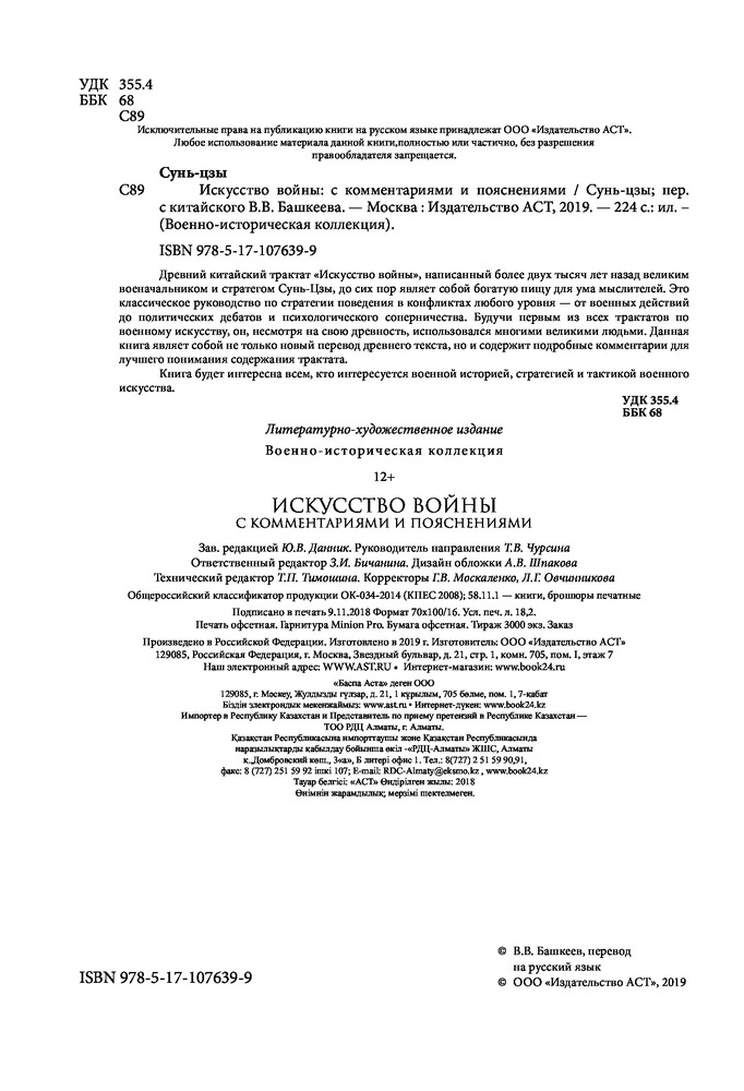 Искусство войны. С комментариями и пояснениямиВ данный момент этот товар отсутствует в продаже. Возможно, у нас найдется аналогичный или похожий товар здесь. Серия: Военно-историческая коллекция Древний китайский трактат «Искусство войны», написанный более двух тысяч лет назад великим военачальником и стратегом Сунь-Цзы, до сих пор являет собой богатую пищу для ума мыслителей. Это классическое руководство по стратегии поведения в конфликтах любого уровня — от военных действий до политических дебатов и психологического соперничества. Будучи первым из всех трактатов по военному искусству, он, несмотря на свою древность, использовался многими великими людьми. Данная книга являет собой не только новый перевод древнего текста, но и содержит подробные комментарии для лучшего понимания содержания трактата. Книга будет интересна всем, кто интересуется военной историей, стратегией и тактикой военного искусства. |