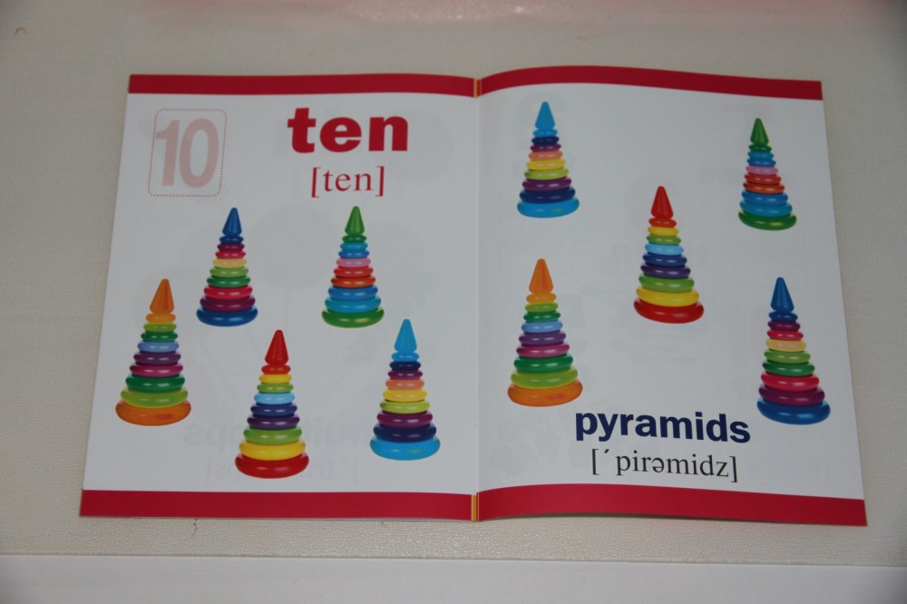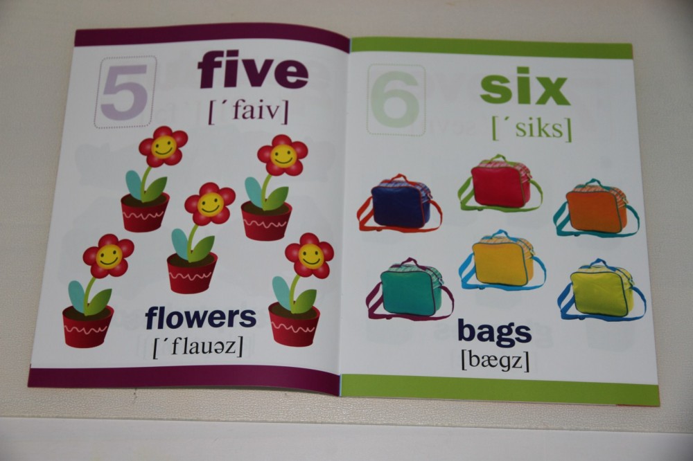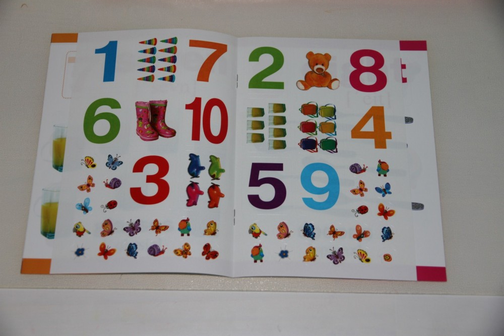 Отличная тетрадь для малышей. Цветная, красочная. Информации мало, только по делу, цифры до 10 и предметы во множественном числе. Красочные наклейки, транскрипция на английском языке (что для меня, как для лингвиста является большим плюсом, т.к в основном в современных изданиях транскрипция либо отсутствует, либо она на русском языке, что неизбежно повлияет на произношение).
