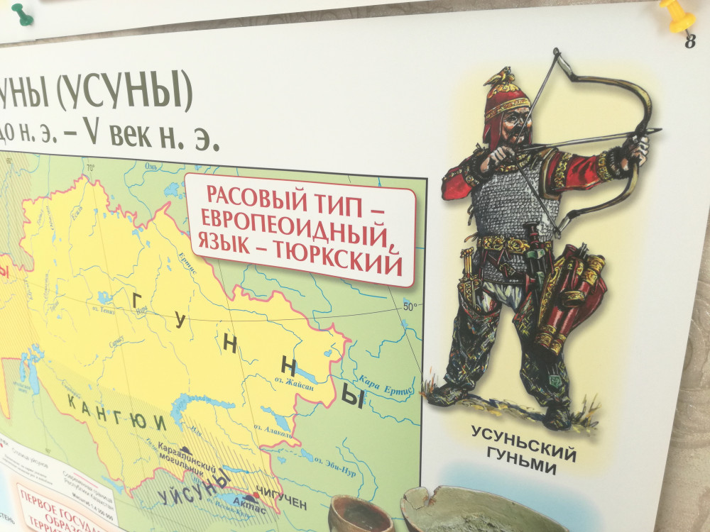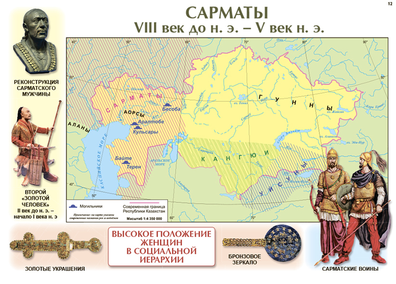 Набор из двенадцати карт по истории древнего Казахстана, размером А-2, помогает в работе - незаменимый демонстрационный материал.