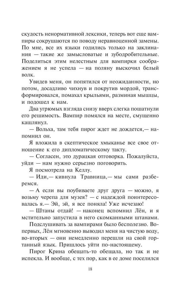 Для всех кому не чуждо юмористическое фентези, советую. Книга очень интересная, сюжет развивается быстро. Читается легко. Вольха по описанию просто очаровательная. Здесь есть и любовь к Главному вампиру и море юмора и детектив. Особого прикольно описание короткой работы Вольхи при дворе. Как всегда она оказывается неожиданно даже для себя очень сильной ведьмой. Враг побежден, злодейство в комплекте с предательством. Ну и любовь к которой она стремится, но и вполне естественно боится. Всем советую для улучьшения настроения .