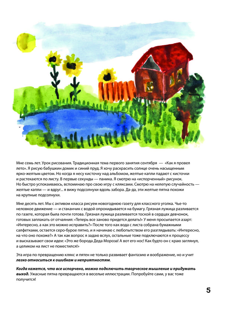 Мне кажется, что возрастная категория указана неверно. 5-8 лет уже слишком поздно. 4-5 лет, наверно, в самый раз. Страницы плотные, на каждой из них по кляксе, а дальше включай воображение. Не совсем то, чего я ожидала.