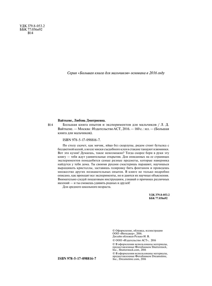 💳 Оплатить за товар можно при получении 🇰🇿 Есть бесплатная доставка по Казахстану от 1 дня 🎁 Копите бонусы с каждой покупки Серия: Большая книга для мальчиков По столу скачет, как мячик, яйцо без скорлупы, рядом стоит бутылка с бесцветной колой, а возле миски съедобного клея в стакане танцуют изюминки. |