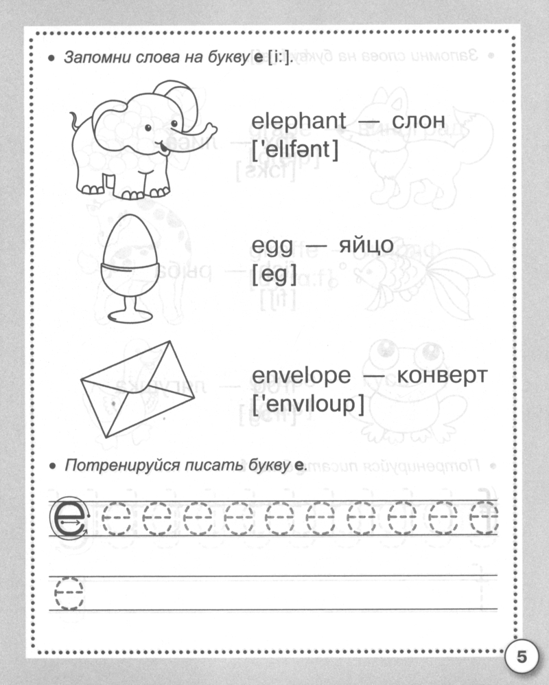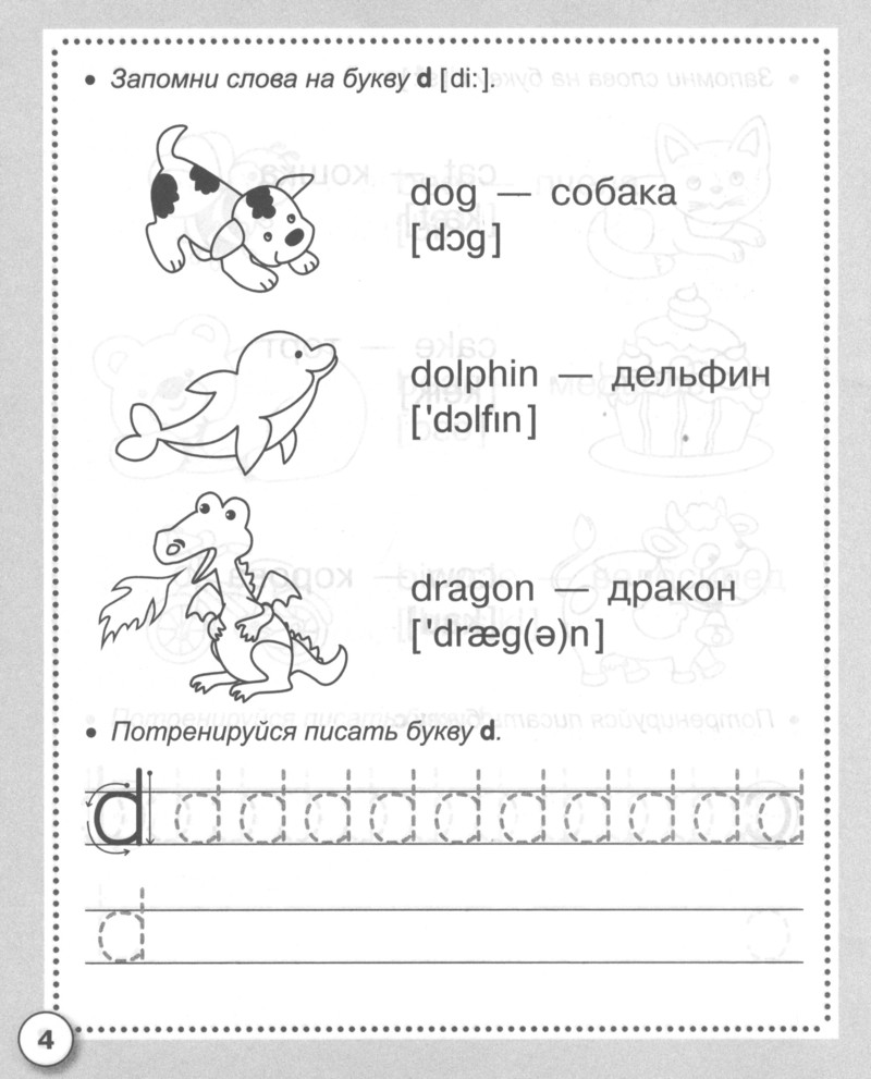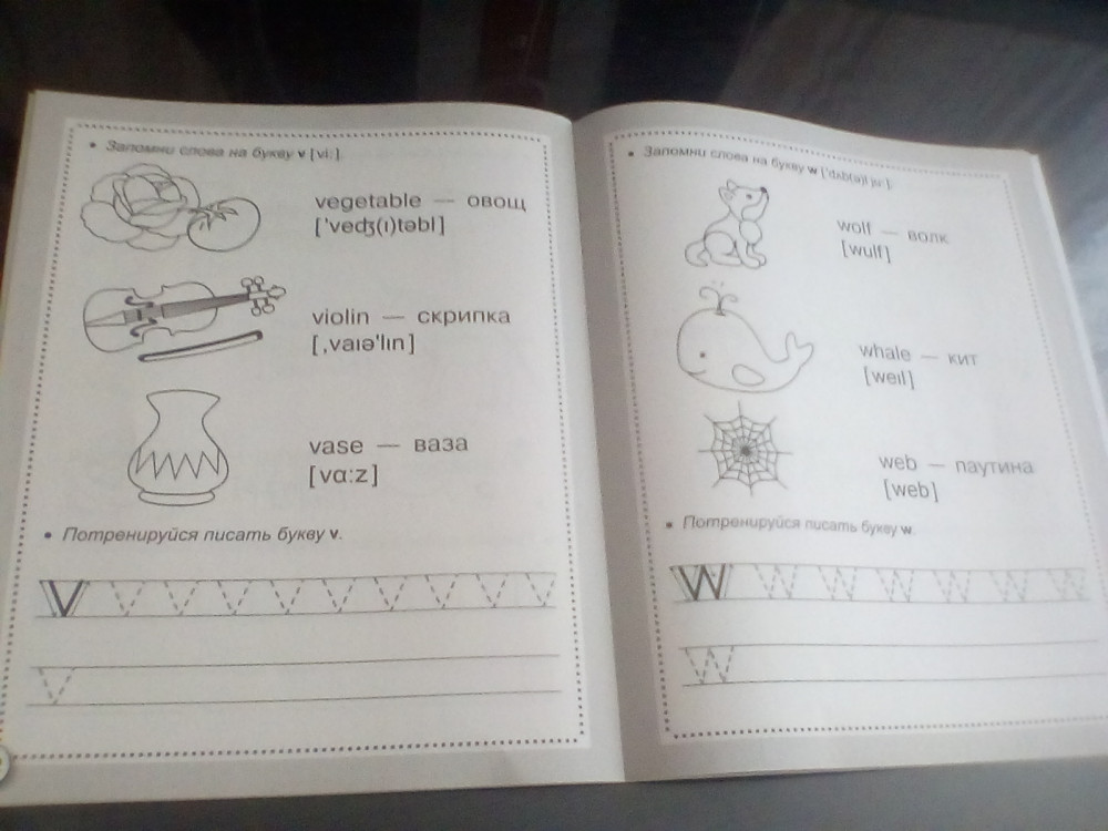 Для развития моторики и заучивания английских слов. Хорошая пропись-раскраска и английские слова.