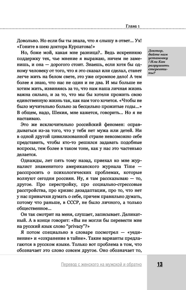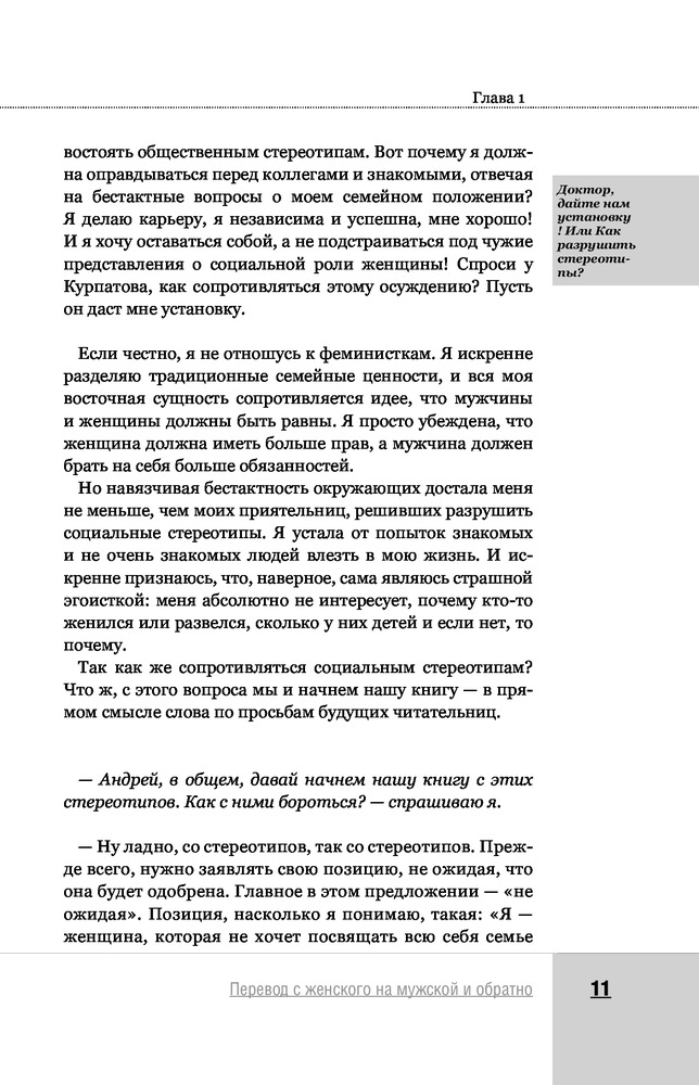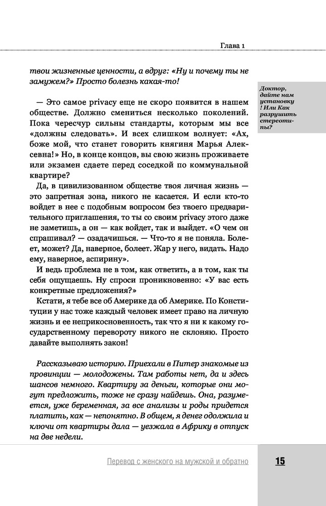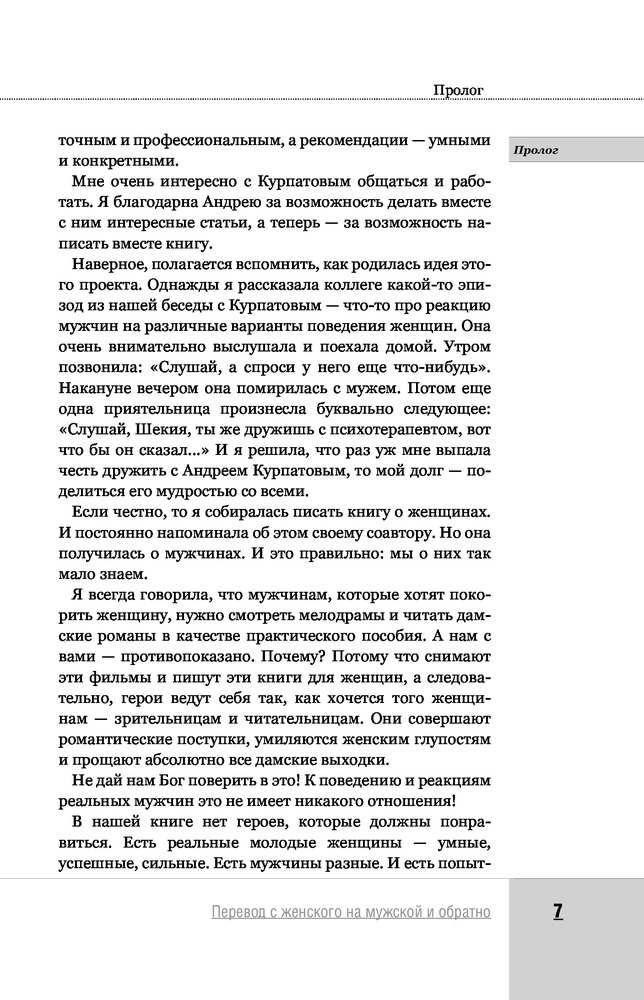 Ответы на эти и другие вопросы рассеивают классические женские заблуждения и помогают добраться до сути проблем. Жизненные примеры и точные советы дают возможность читателю посмотреть на себя со стороны и понять, что происходит на самом деле. Благодаря рекомендациям и советам автора раскрывается методика расшифровки мужского и женского поведения. Эта книга — реальный инструмент для достижения гармоничных и счастливых отношений, сохранения и укрепления союза.