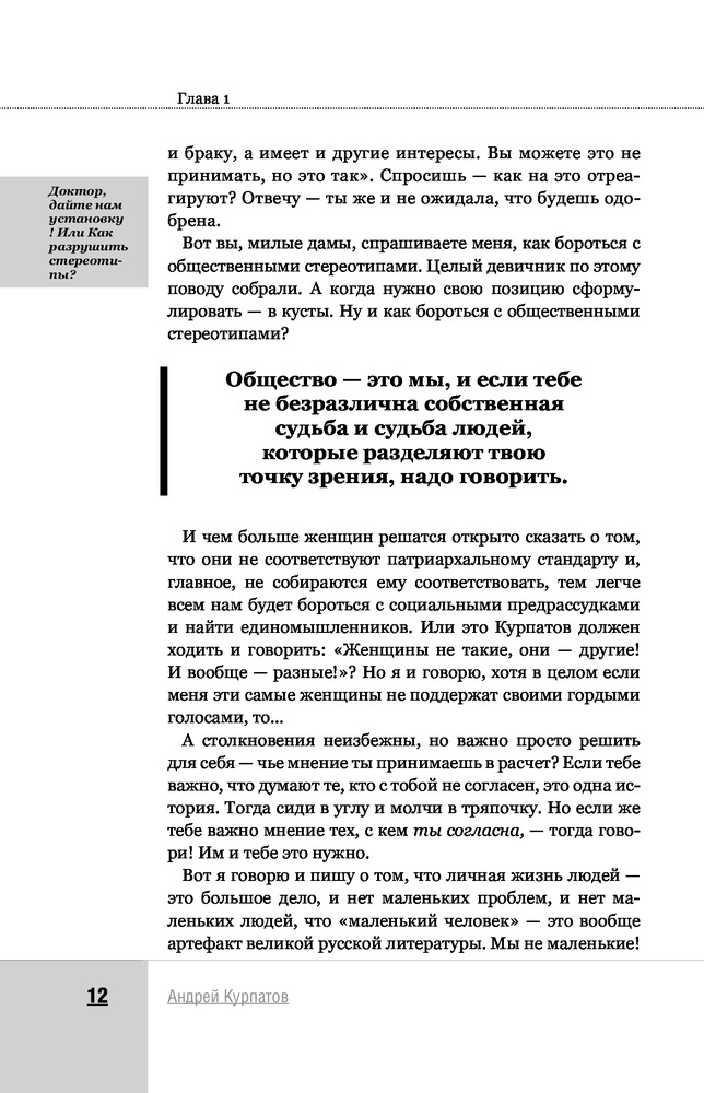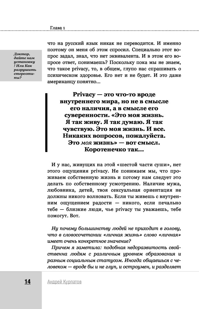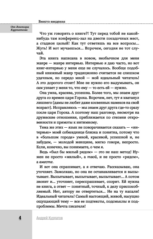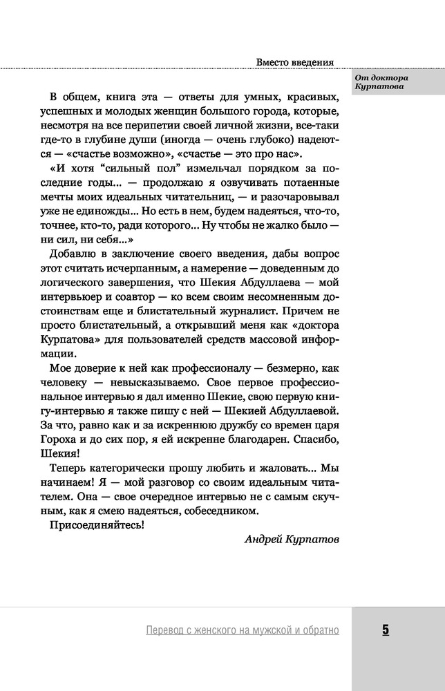Андрей Курпатов — основатель и руководитель одного из лучших психотерапевтических центров России, врач-психотерапевт, президент Высшей школы методологии. Автор более тридцати научно-популярных книг, замечательных бестселлеров, посвященных различным аспектам поведения человека, его книги изданы на восьми языках общим тиражом более пяти миллионов экземпляров. Автор и ведущий телевизионных программ на Первом канале и на телеканале «Домашний» — «Доктор Курпатов» и «Все решим с доктором Курпатовым».